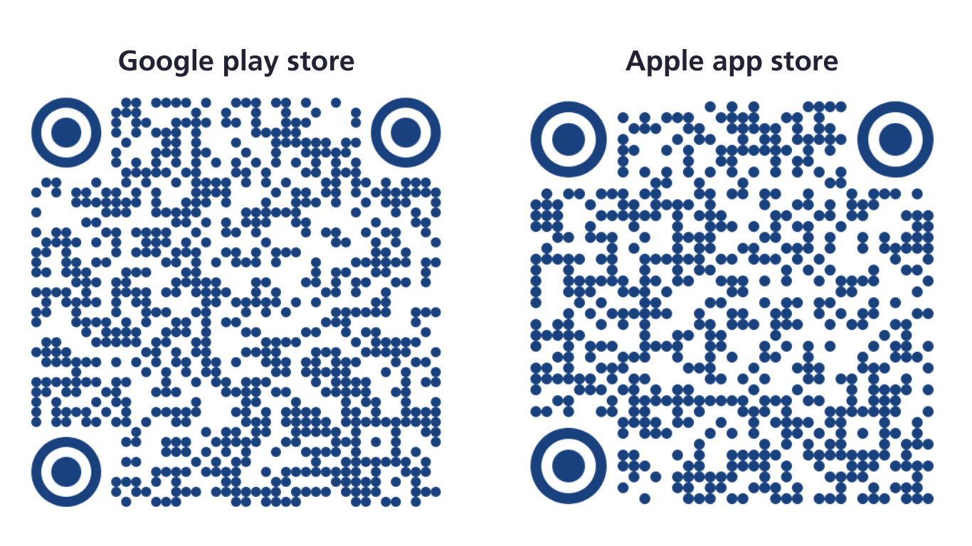 Je kan de Apple IOS app hier downloaden en de Google Play Store app hier. Of je kan een van de twee QR codes scannen.